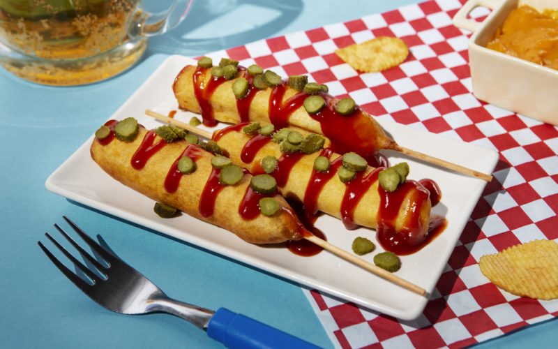 在繁忙的夜市中,那些金黃酥脆的炸熱狗總能吸引過路人